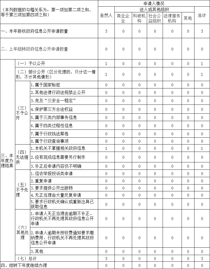 三、收到和處理政府信息公開申請情況