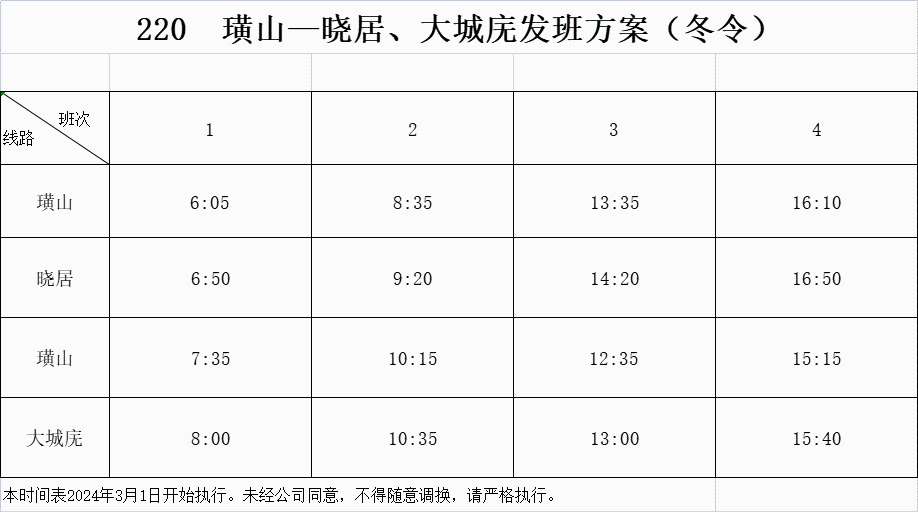 2024年3月1日起,城鄉公交部分班車發班時間調整,具體如下: