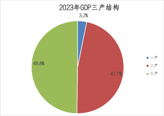 初步核算,2023年全市實現地區生產總值(GDP)1755.29億元,按可比價格計算,比上年(下同)增長7.6%。其中,第一產業增加值55.91億元,增長3.9%;第二產業增加值826.01億元,增長6.5%;第三產業增加值873.37億元,增長8.8%。按戶籍人口計算,全市人均生產總值為163501元,增長8.0%,按2023年平均匯率1:7.047折算為23202美元。三次產業增加值結構為3.2:47.1:49.8。