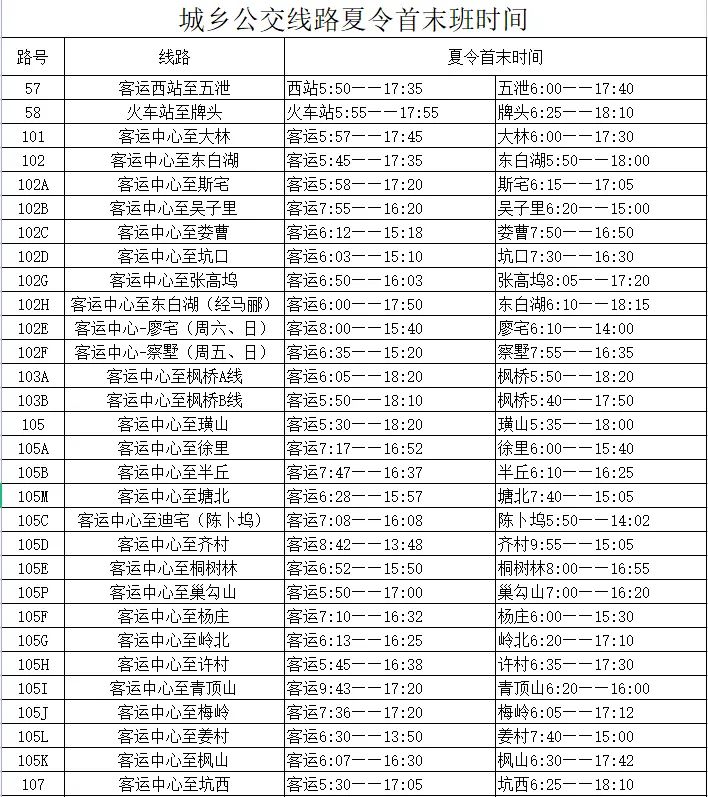 2024年5月6日起,諸暨城鄉(xiāng)公交執(zhí)行夏令時間,首末班時間也進(jìn)行了調(diào)整,具體如下: