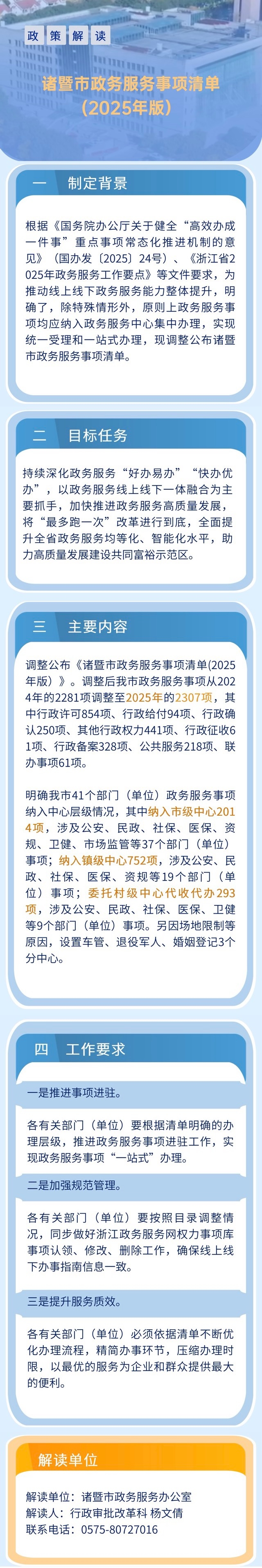 【文字解讀】【圖文解讀】《諸暨市政務服務事項清單(2025年版)》政策解讀