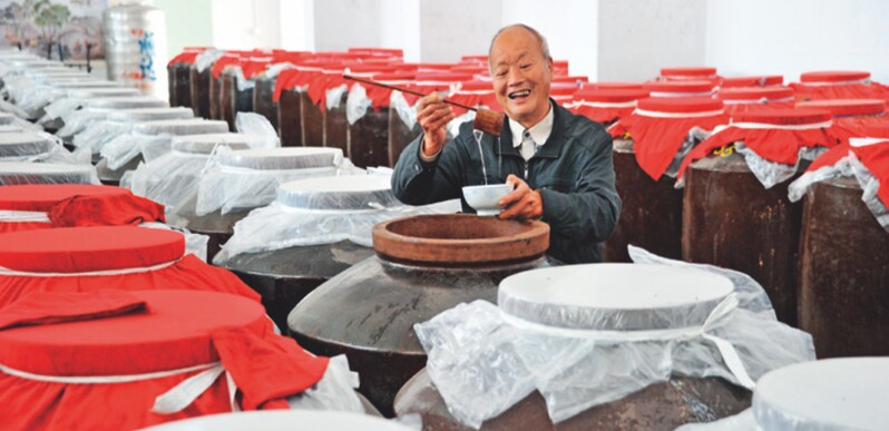 清香型白酒,因產地在浙江省諸暨市同山鎮而得名,素有“江南小茅臺”之稱。同山燒以諸暨特有的高腳拐糯高粱為原料,取同山鎮上汲龍水釀制而成,因地處盆地,常年恒溫窖藏,因此酒質清澄,口感甘冽。