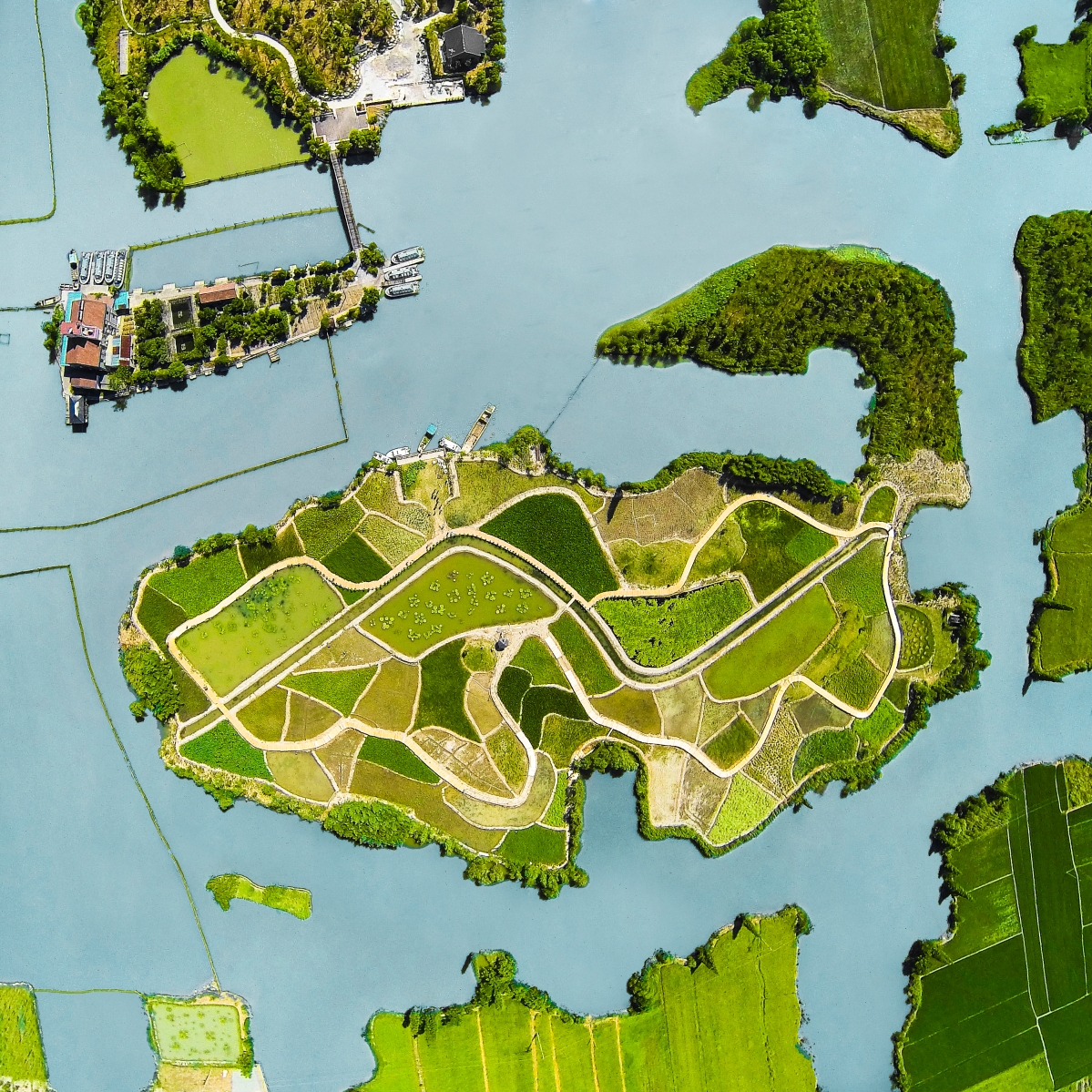 以生態旅游和科普宣教方式已開發七個特色景點(漁耕文化展示島、月季島、紫薇島、水生植物展示島、桃花島、櫻花島、香草島),景區設有休閑垂釣區、團建活動區、生態宣教區、餐飲區等游客活動場所。